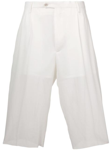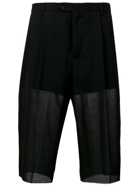 high-waisted shorts Maison Margiela’s work is often considered deconstructionist and largely occupied by the concepts of reinvention and reinterpretation. Add a sophisticated edge to your casual looks with these white virgin wool blend shorts from Maison Margiela. Featuring a high rise, belt loops, a button and zip fly, side pockets, a sheer construction and a partial lining. Made in Italy Composition Lining: Cupro 51%, Silk 49% Outer: Virgin Wool 85%, Polyamide 15% Washing instructions Dry Clean Only