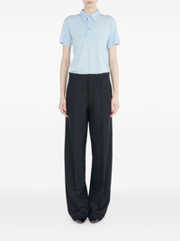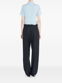 high-waisted trousers Highlights - Black - Concealed front fastening - Two side inset pockets - Rear button-fastening jetted pocket - Signature four-stitch logo Made in Italy Composition Polyester 50%, Wool 50%