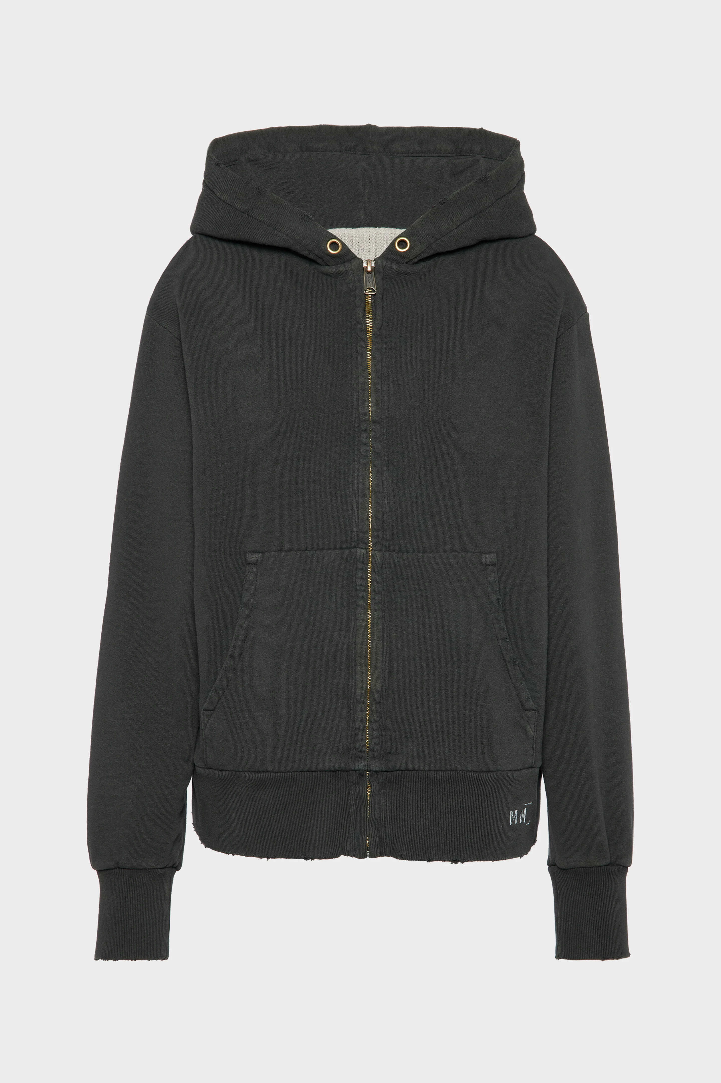 This hooded sweatshirt offers a softer take on a casual staple. Crafted in cotton, its ribbed trims and raw hems suggest wear through time. The discreet ‘MM’ embroidery finishes the piece with the Maison Margiela signature. The four stitches appear at the back; the opposite of a label. Product Details Item ID S51HG0022MTJ033862 Primary Fabric: 100% Cotton Zip-through hooded sweatshirt Distressed hem and cuffs Metal eyelet detail at hood Kangaroo pocket and ‘MM’ embroidery Four stitches at the back Made in Italy