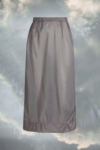 The midi skirt creates an inside out aesthetic with transparent finish. For an undone aesthetic, the Maison's Work-in-progress basting stitch is visible with loose threads to further the effect. Maison Margiela’s signature, the Four stitches, appear at the back; the opposite of a label. Product Details Item ID S29ME0013S54847852 COED Fall Winter 2023 Composition: 100% Nylon Transparent mid length skirt Inside out effect Destroyed effect Décortiqué details Basting stitch Front and back pleats Back slit Contrasting zip closure at the back Four stitchesat the back Made in Italy Model is 5'11" tall and wears a size 40.