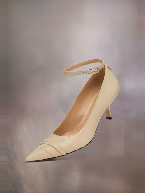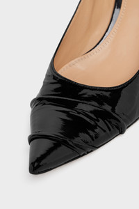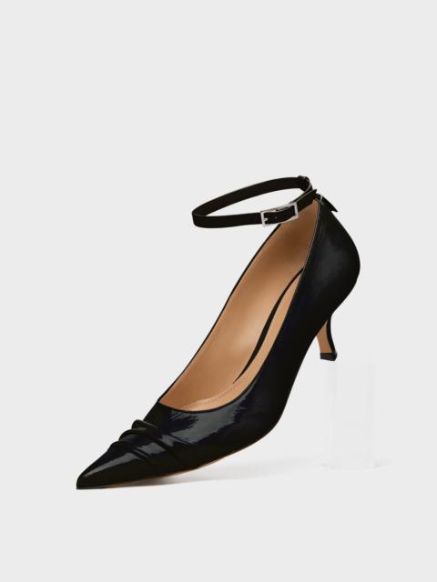 Representing the unusual or eccentric, the Maison’s Kinkies pump is a new ladylike shoe silhouette with punk attitude. Crafted from supple lambskin, with a soft and slightly swollen texture alongside its patent finish, the pumps feature handmade pleats for a luxurious touch, and a 5.5cm heel. They are reinforced with rubber at the toe for longevity, and are complete with an adjustable ankle strap. Maison Margiela's signature stitch appears at the back; the opposite of a label. Product Details Item ID S58WL0276P8194T8013 Upper: 100% Ovine Leather Lining: 100% Ovine Leather Inside: 100% Ovine Leather Contrast: 100% Ovine Leather Sole: 100% Calf Leather Heel hight: 5,5 cm Kitten heel Decollete shoes in soft patent leather Pointed toe with handmade pleat details Thin ankle strap with a buckle White stitching at the back Clean with soft, dampened cloth Made in Italy