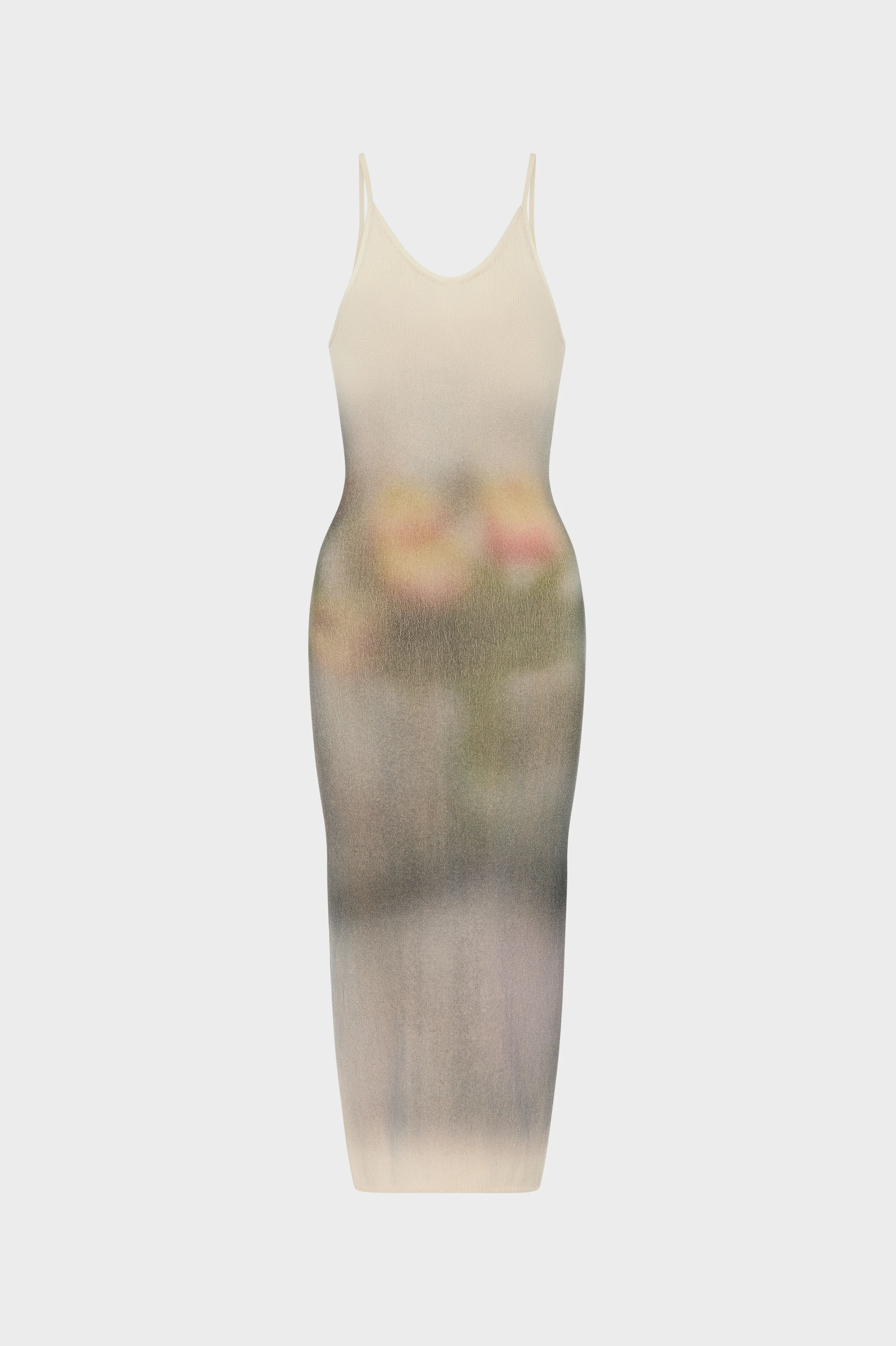 This knit maxi dress is shaped by a softly contoured silhouette, where floral imagery is diffused across the body as if suspended beneath the surface. The print recalls still life compositions, reworked through a blurred, engineered placement. At the back, the Maison’s signature four stitches appear; the opposite of a label. Product Details Item ID S29DG0030M13252103S Primary fabric: 100% cotton Gauge 7 Maxi length Thin shoulder straps V-neck Back slit Four stitches at the back