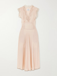 Lace-trimmed Satin Midi Dress