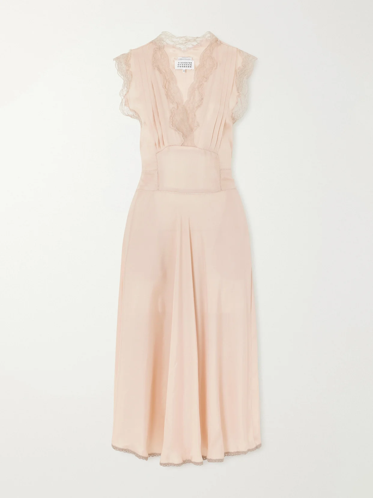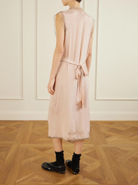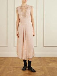 Maison Margiela dress is crafted with a delicate lace inset at the neckline and softly pleated skirt that moves fluidly. The sleeveless silhouette falls to a graceful midi length in a soft blush tone. Style yours with knee boots for subtle contrast.