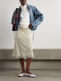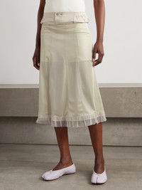Maison Margiela's skirt is designed with checked cotton shorts that cleverly peek out at the partially elasticated waist and provide coverage. It's been made in Italy from panels of lightweight chiffon and falls to a ruffled hem.
