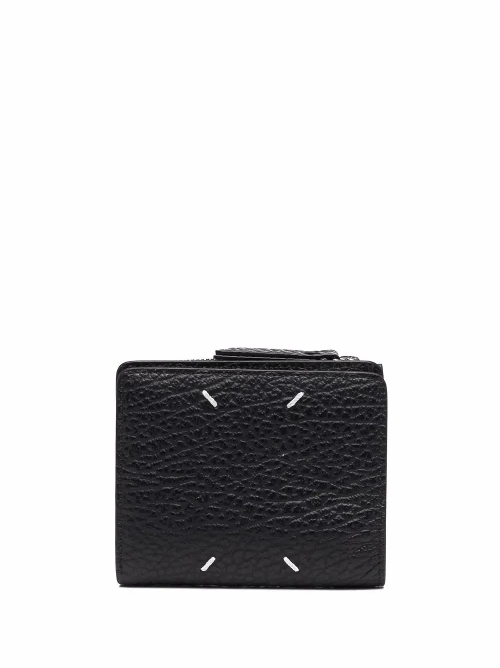 Leather Flap Wallet in Black from Maison Margiela Highlights - black - leather - zip pouch for coins - cash compartment - slits for cards - signature four stitches - printed brand logo inside Made in Italy Designer ID: SA1UI0023P4455 Color ID: T8013 Black Materials Body: 100% Bovine Leather Interior: 100% Bovine Leather Lining: 100% Viscose Metal Hardware: 100% Brass Metal Hardware 1: 100% Zamak