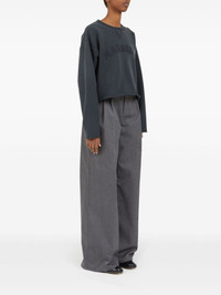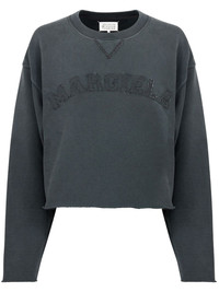 logo-applique cotton sweatshirt Highlights - Dark grey - Cotton - Jersey fleece - Applique logo - Frayed detailing - Crew neck - Drop shoulder - Long sleeves - Cropped - Straight hem Made in Italy Composition Cotton 100% SIZE & FIT FittingInformation Designed to be unstructured, offering a loose fit throughout Made from a midweight non-stretch fabric, this piece offers minimal elasticity when worn