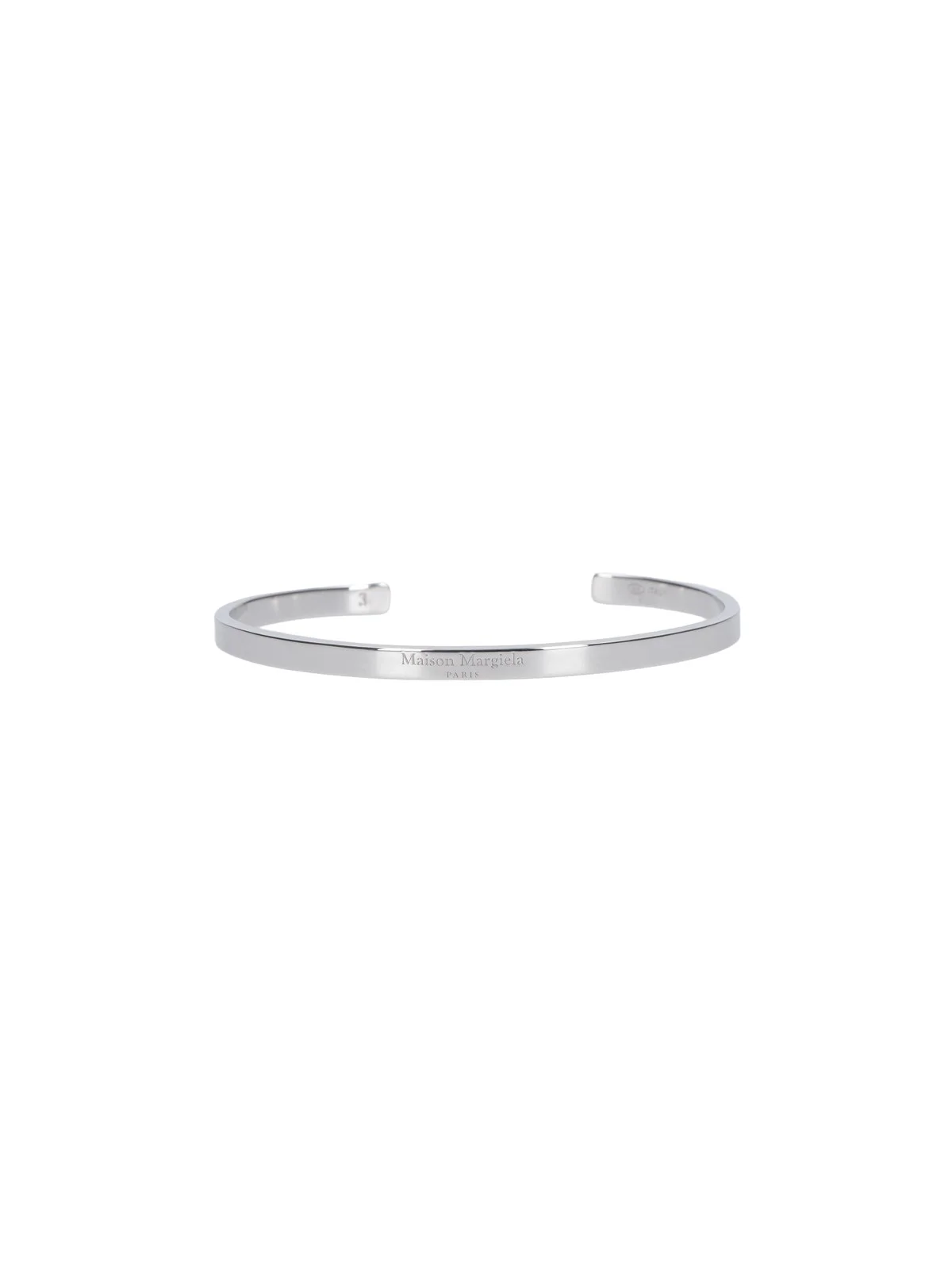 MAISON MARGIELA LOGO BANGLE IN 925 SILVER, SILVER FINISH, LOGO EMBOSSED ON THE FRONT. PRODUCT INFO PRODUCT CODE SM1UY0103 P8865102 COMPOSITION: 100% SILVER 925 MADE IN: ITALY