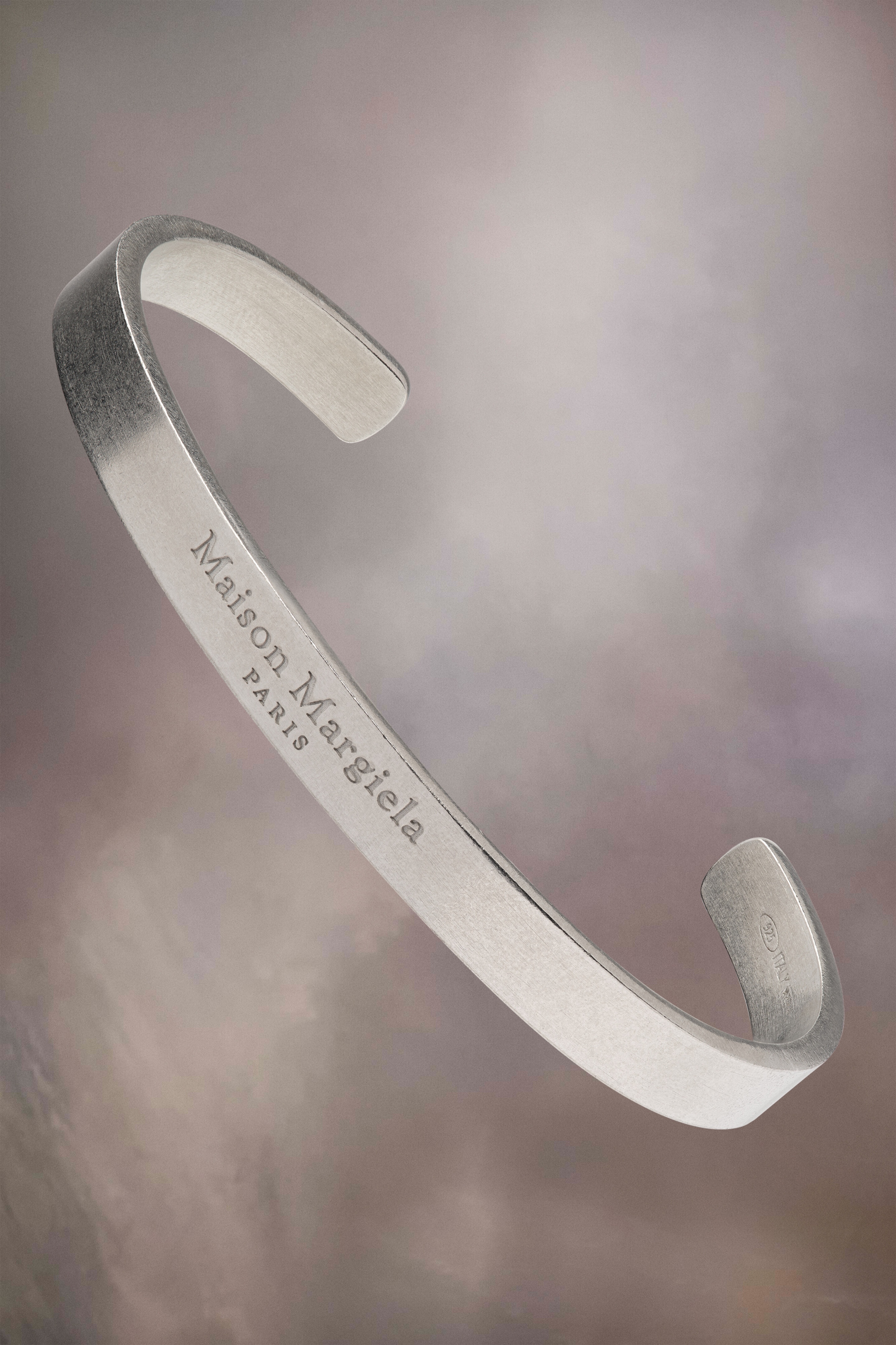 The medium-width cuff bracelet in palladium features the Maison's engraved logo.