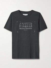 EDITORS'NOTES Maison Margiela's T-shirt is printed with its signature sequence of numbers, which represent the brand's various product lines. It's cut from cotton-jersey for a relaxed fit. Wear yours with jeans or track pants. SIZE & FIT Model measurements: - Fits true to size, take your normal size - Cut for a relaxed fit - Lightweight, stretchy fabric - Model is 180cm/ 5’11” and is wearing a size XSmall - Bust: 79cm/ 31” - Waist: 61cm/ 24” - Hip: 89cm/ 35” DETAILS & CARE - Charcoal and white cotton-jersey - Slips on - 100% cotton - Machine wash