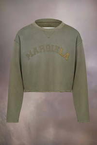 In vintage tubular cotton, the cropped sweatshirt features a Memory of Margiela logo across the chest with appliquéd LA lettering. It has raw edges and a ribbed crew-neckline. Maison Margiela's signature, the four stitches, appear at the back; the opposite of a label. Product Details Item ID S51GU0123S25580740 The model is 6'1" tall and wears size S.