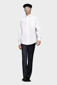 The classic long-sleeved shirt in eco cotton poplin with a collar, buttoned placket and chest pocket. Maison Margiela's signature, the four stitches, appear at the back; the opposite of a label. Product Details Item ID SI0DL0001S52245100 Composition: 100% Cotton Point collar Mother of pearl button closure Patch pocket Curved hem Four stitches at the back Made in Italy Oversized fit The model is 5'10" tall and wears size 40.