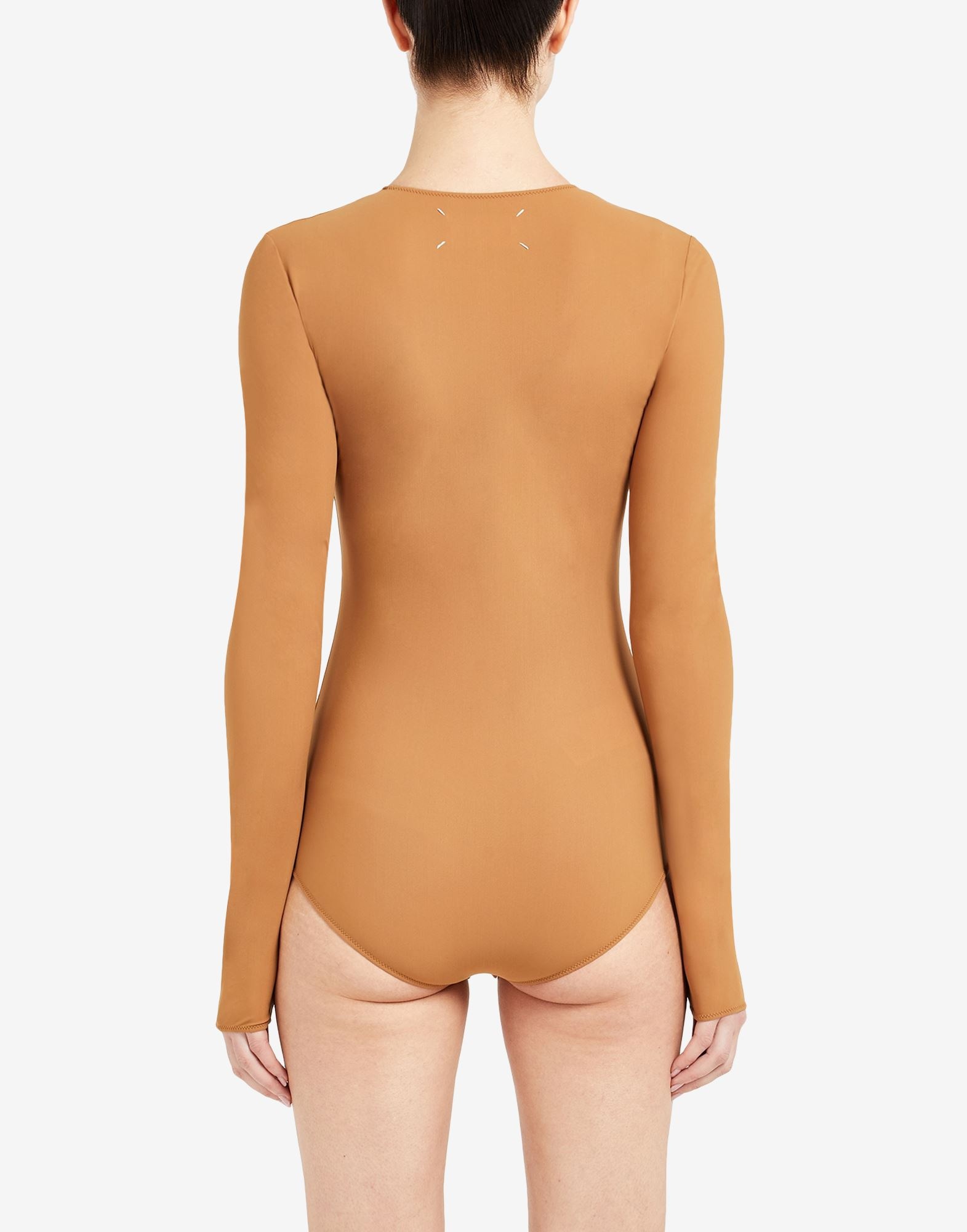 Item details 73% Polyamide, 27% Elastane Round collar Long sleeves Elasticated cuffs Snap buttons fastening Crotch of body