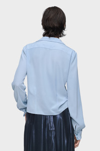 This shirt is cut from organic silk crepe de chine with a fluid, light drape. A sharp collar, patch pocket, and button-through front frame the pared-back silhouette, while long sleeves taper into buttoned cuffs. At the back, the Maison’s signature four stitches appear; the opposite of a label. Product Details Item ID S51DT0028M35704479 Primary fabric: 100% silk Silk crepe de chine Long sleeves Shirt collar Front button closure Four stitches at the back Made in Italy