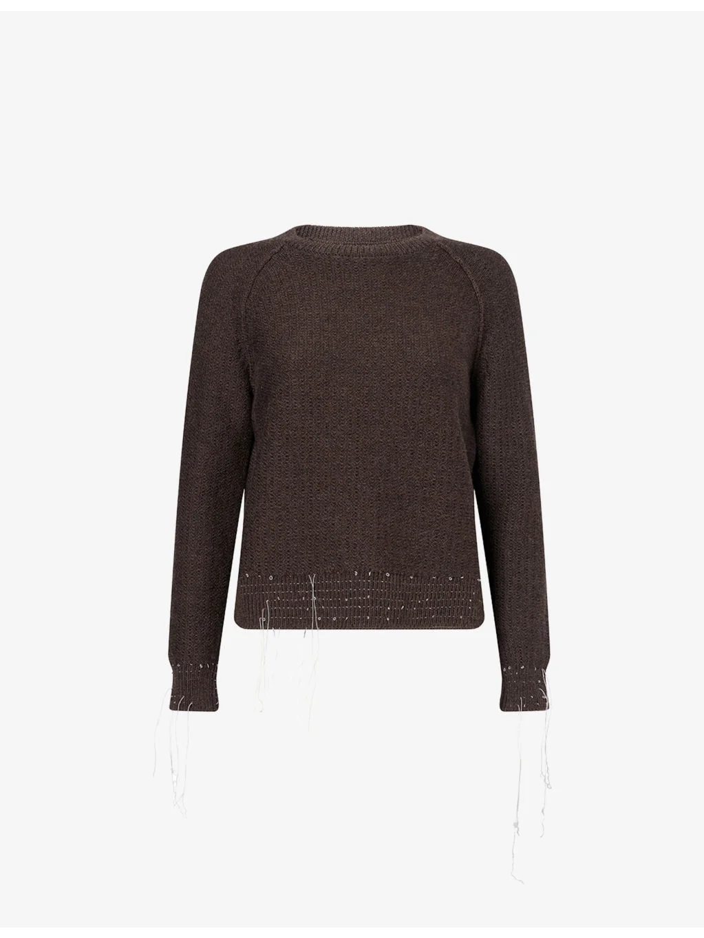 PRODUCT DETAILS - Maison Margiela wool-blend jumper - 98% wool, 2% elastane - Relaxed fit, round neck, long raglan sleeves, exposed loose threads at ribbed trims, signature four stitches at back - Hand wash - Made in Italy - True to size - Model is 5ft 10in/1.78m and wears a size small - Midweight, stretchy Ref: R04570847