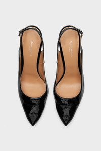 The Loved to Death slingback is crafted from glossy patent goat leather, with hand-moulded details that mirror the marks of natural wear. The structured silhouette is defined by an upward toe crease, while the calf leather sole is hand-varnished and lightly sanded for a worn-in feel. Maison Margiela's signature single white stitch appears at the back. Product Details Item ID S58WP0292P7426T8013 Body: 100% Goat Leather Lining: 100% Ovine Leather Inside: 100% Ovine Leather Contrast: 100% Goat Leather Sole: 100% Calf Leather Pointed slingback pumps in glossy goat leather Hand-shaped upper with a natural upward toe crease Maison Margiela signature at the insole White stitching at the back Made in Italy