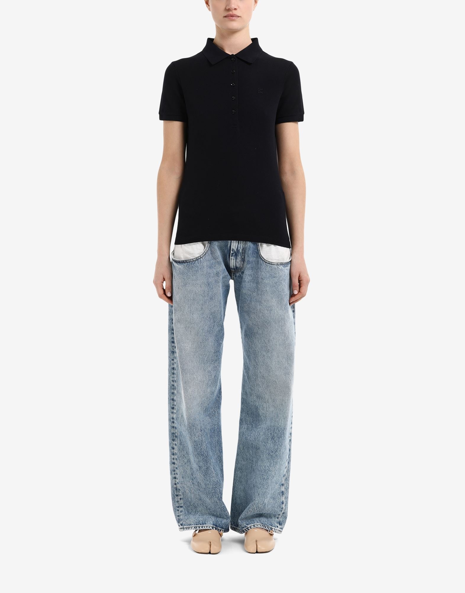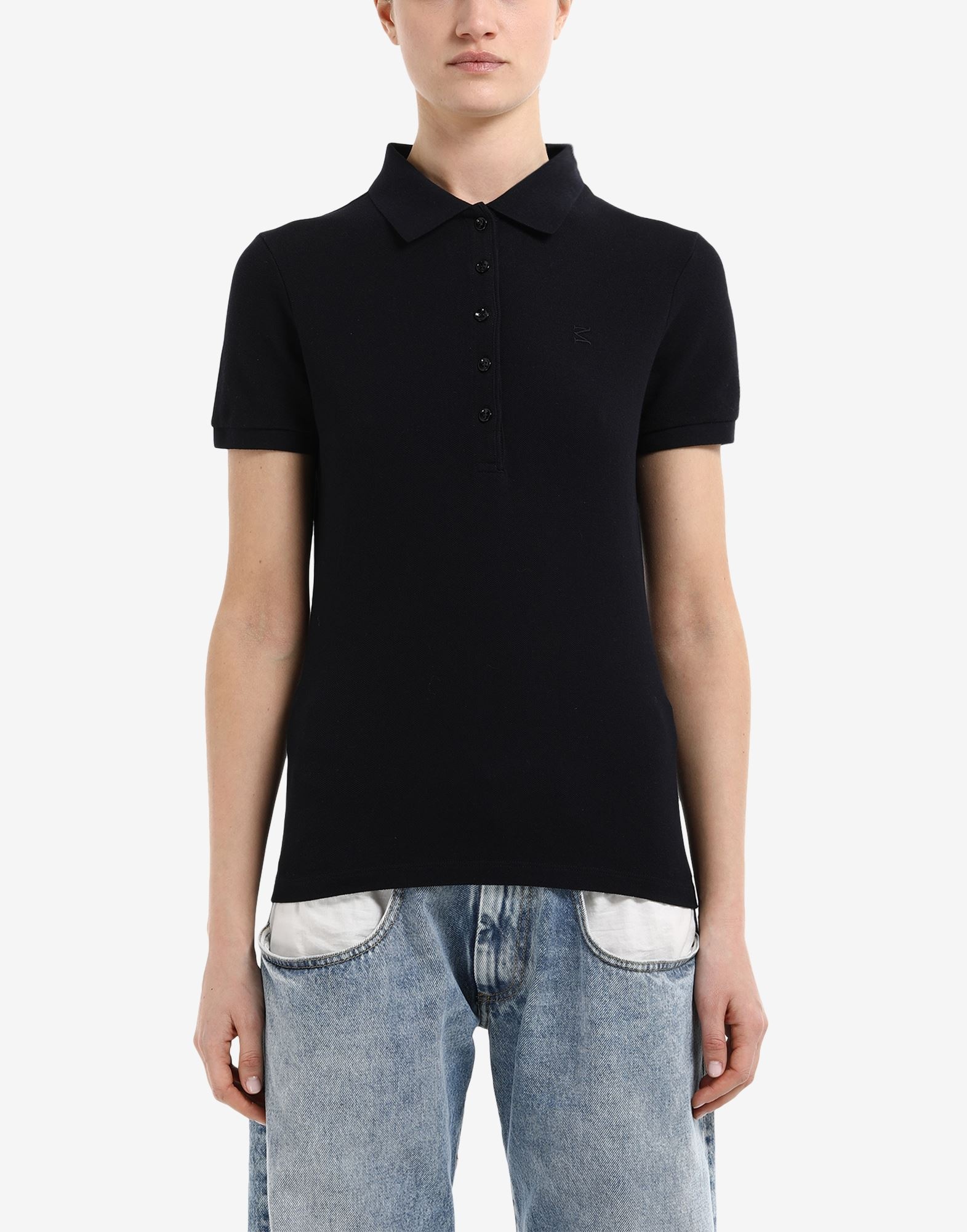 Polo shirt in cotton piquet featuring five buttons and a tonal M logo embroidered at the front, plus the white four-stitches moniker at the back. Made in Italy. Item details 100% Cotton Piqué Logo Polo collar Short sleeves Button closing