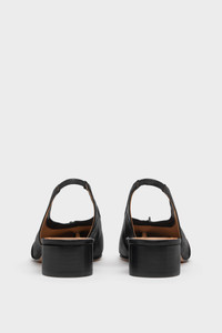 Maison Margiela presents the Tabi new ballerinas, which take their design from ballerina shoes in the house archives. The slingbacks have a 3cm heel and are crafted in soft nappa leather, with a handcrafted used treatment applied at the folds, base and seams, manually worked to create an artisanal vintage effect. They feature the Tabi split-toe, inspired by the traditional 15th century Japanese sock bearing the same name – launched for the Maison's debut collection in 1989. It captures the avant-garde and insubordinate spirit of the Maison and exists as a heritage classic, continually explored through each collection. Product Details Item ID S58WZ0141P6378T8013 Upper: 100% Calf Leather Lining: 100% Ovine Leather Inside: 100% Ovine Leather Contrast: 100% Calf Leather Sole: 100% Calf Leather Contrast: 100% Rubber Tabi slingback heeled mules in leather Notched vamp Front knotted detail Stacked block heel Maison Margiela signature at the insole Made in Italy