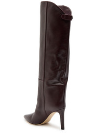 Info & Care Jimmy Choo leather knee-high boots Heel measures approximately 3.25 inches/ 85mm Faux press-stud fastening tab at back, pointed toe Pull on Size & Fit Only available in full sizes, go up to the nearest whole size if you take a half size