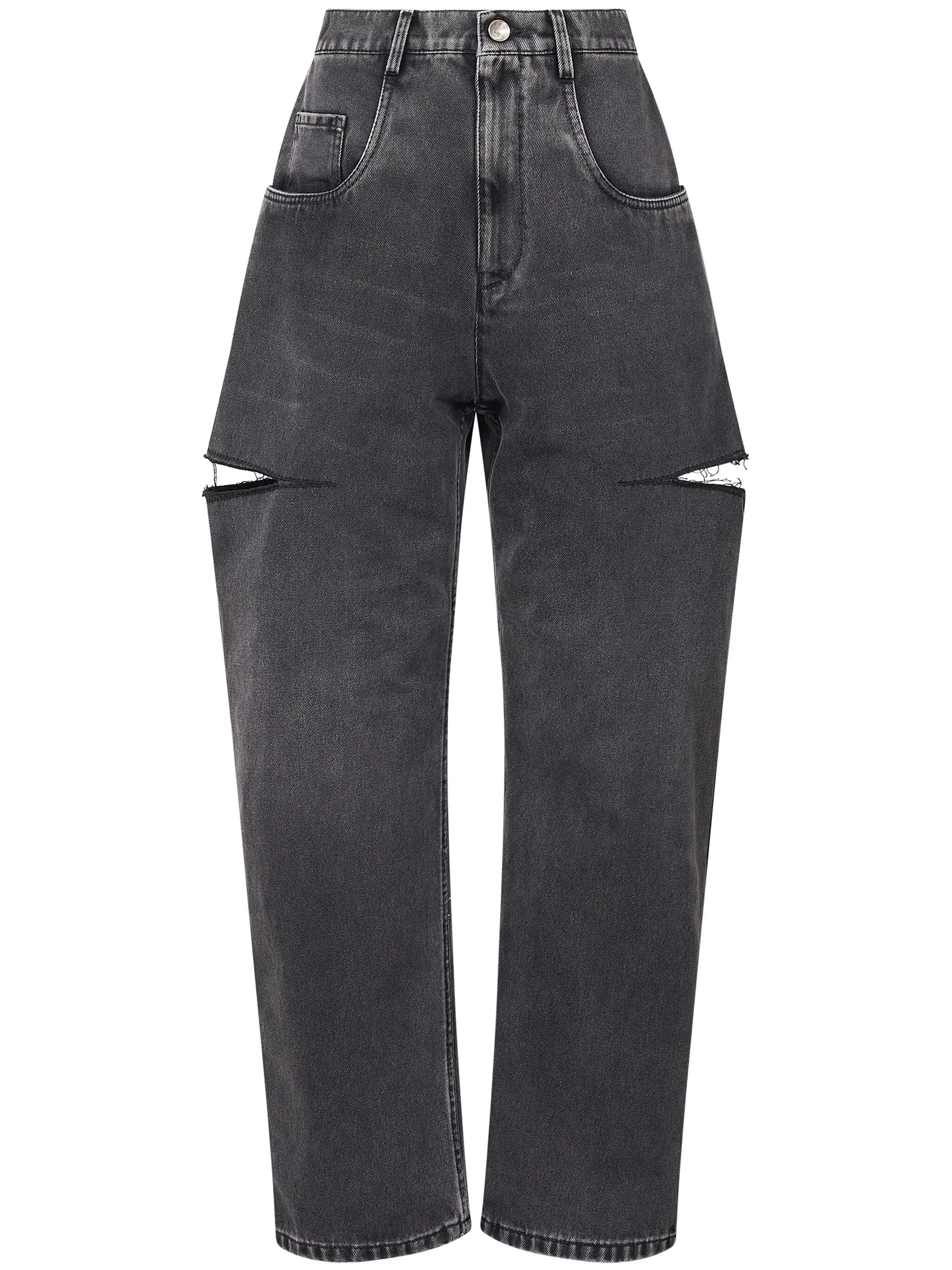 black cotton denim cut-out detailing signature four-stitch logo high-rise belt loops concealed fly and button fastening classic five pockets tapered leg - Color: BLACK - Made in: Italy - Designer Style ID: S30743 S51LA0051 965 Composition and care Cotton: 100.0%