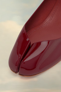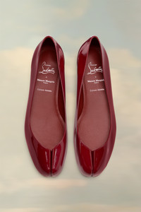 Part of the Maison Margiela x Christian Louboutin capsule collection, the Marlougiela ballerinas feature the iconic Tabi split-toe shape. Crafted entirely from Brownie red patent calf leather, it has a tapered silhouette with a bold rounded neckline. A Single White Stitch and Iconic Red Sole reveal the Maison Margiela style revisited by Christian Louboutin. This model features a new 'Everlasting Red Sole' thanks to an innovative coating technique that ensures resistance and lasting vibrancy. Product Details Item ID S39WZ0109P7374HB019 Upper: 100% Calf Leather Lining: 100% Goat Leather Inside: 100% Goat Leather Sole: 100% Polyurethane Heel height: 2 cm Ballerina shoes in patent calf leather and soft lining Tabi split toe White stitch line at the back Christian Louboutin red sole Made in Italy Important: Returns Policy Information Products must be returned in perfect condition, and the red sole must not be marked