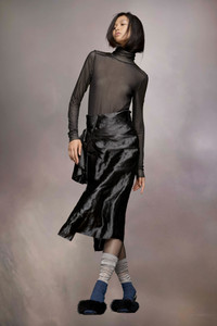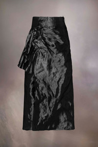 The midi skirt in metallic silk has raw edges for an unfinished aesthetic contrasting the extravagant draped, ruffled and buttoned decoration. It presents the new work-in-progress concept of the Maison. Maison Margiela’s signature, the Four stitches, appear at the back; the opposite of a label. Product Details Item ID S51ME0010S78555900 Primary fabric: 42% polyester, 41% metallic fibre, 17% silk High waist midi wrap skirt in metal silk Wrinkled effect Side buttons and flounce Rough hem Side hook and zip closure Four stitches at the back Made in Italy
