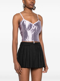 metallic-finish cropped top Highlights - Light purple - Metallic finish - Detachable thin shoulder straps - V-neck - Seam detailing - Sleeveless - Signature four-stitch logo - Cropped - Rear hook fastening Made in Italy Composition Outer: Polyester 42%, Metallic Fibre 41%, Silk 17% Lining: Viscose 100% SIZE & FIT Model measurements Height 5 ft 11 in(1.8 m) Bust/Chest 31.49 in(80 cm) Hips 36.61 in(93 cm) Waist 24.4 in(62 cm) FittingInformation Designed for a slim fit that sits just away from the body offering a close yet comfortable fit Made from a lightweight non-stretch fabric This piece fits true to size – take your usual size Washing instructions Dry Clean Only