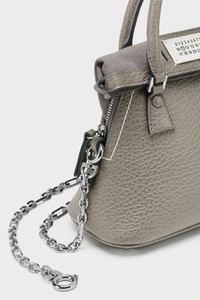 The 5AC classique micro, crafted from grainy leather, features top handles and a chain shoulder strap. It is accented with the logo label at the front. The iconic 5AC line takes its name from the French word 'sac' (bag). It explores the Maison's Anonymity of the lining concept. The bag's metal rivets are covered in leather by hand, with the metal visible only where needed, for a clean aspect. Artisanal details include the bag's exposed edges hand-painted in tone with the leather. Product Details Item ID S56WG0081P4455T8049 Body: 100% Calf Leather Contrast: 79% Cotton 15% Polyester 6% Other Fibers Lining: 100% Cotton Inside: 100% Calf Leather Metallic hardware Top-handle bag in grained leather with contrast canvas panel Detachable and adjustable chain and leather shoulder strap Zip closure at the top Numeric signature label at the front Protective metal feet at the base Four stitches at the back Made in Italy