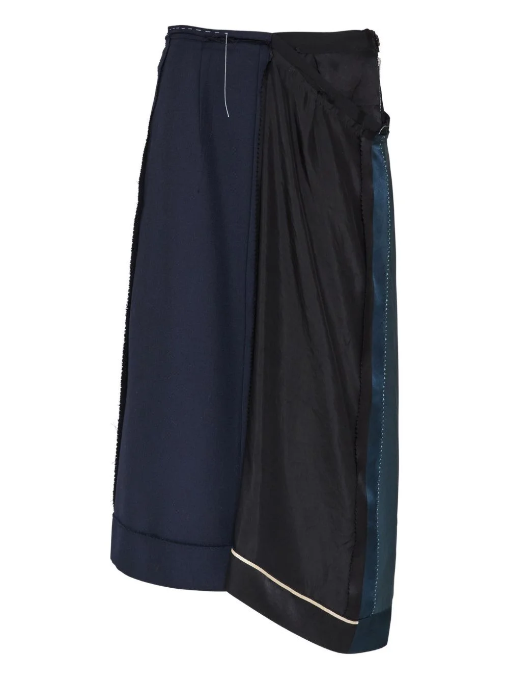 asymmetric midi skirt Highlights - Navy blue - Side zip fastening - Panelled design - Layered design Made in Italy Composition Polyester 55%, Wool 45% Washing instructions Read Manufacturer Guidelines