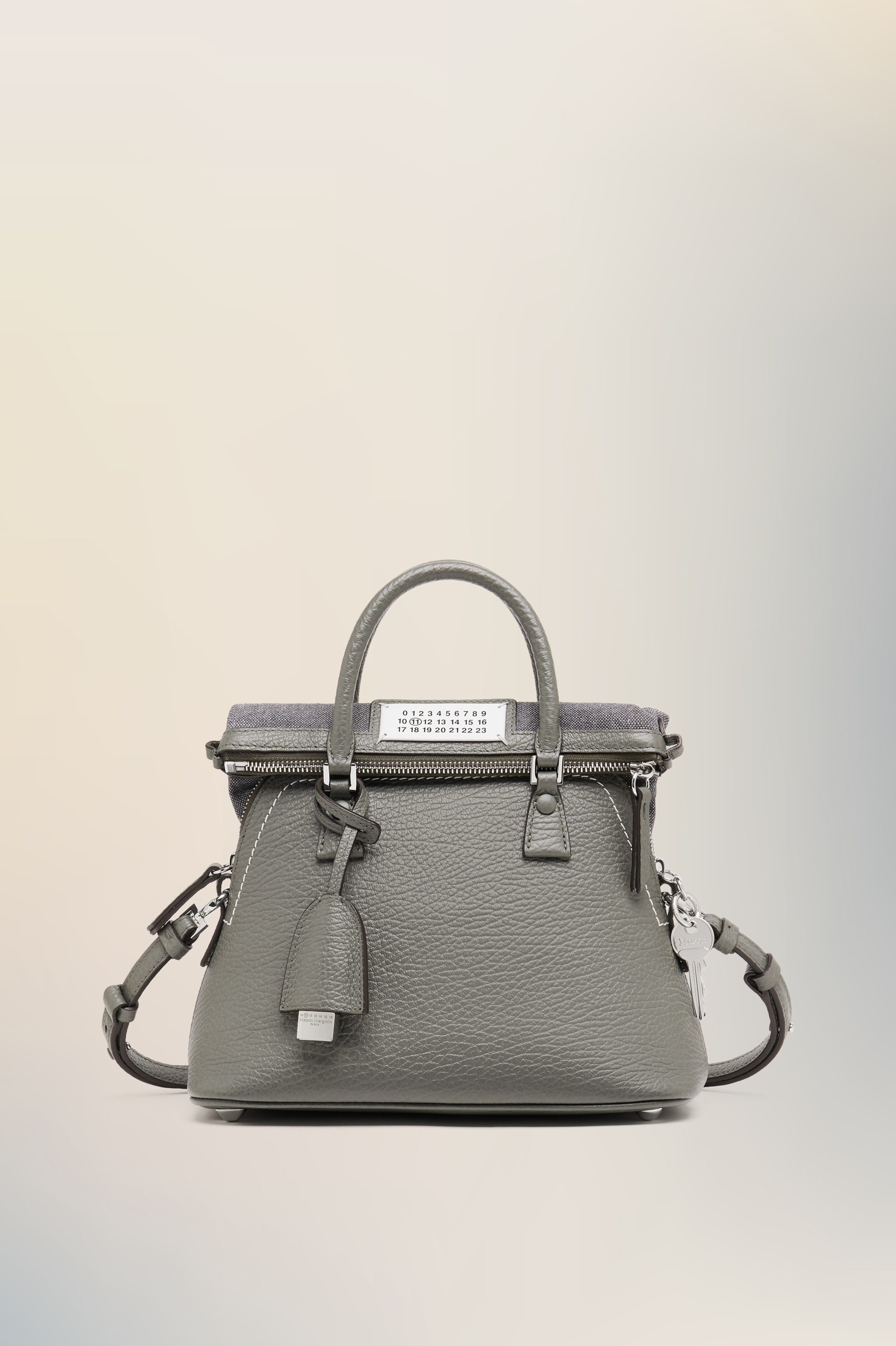 The 5AC classique mini, crafted from grainy leather, features top handles and a tonal shoulder strap. It is accented with the logo label at the front. The iconic 5AC line takes its name from the French word 'sac' (bag). It explores the Maison's Anonymity of the lining concept. The bag's metal rivets are covered in leather by hand, with the metal visible only where needed, for a clean aspect. Artisanal details include the bag's exposed edges hand-painted in tone with the leather. Product Details Item ID S56WG0082P4455T8127 Body: 100% Calf Leather Contrast: 79% Cotton 15% Polyester 6% Other Fibers Lining: 100% Cotton Inside: 100% Calf Leather Metallic hardware Top-handle bag in grained leather Detachable and adjustable leather shoulder strap Zip closure at the top Numeric signature label at the front Protective metal feet at the base Leather clochette Four stitches at the back Made in Italy