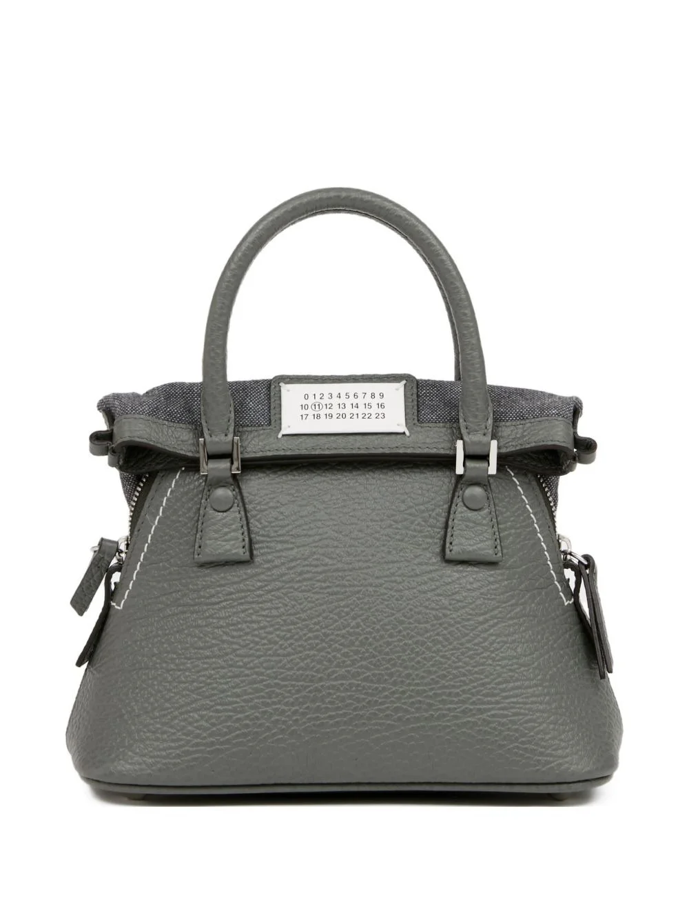 mini 5AC Classique tote bag Highlights - Grey - Top zip fastening - Two rolled top handles - Chain-link shoulder strap - Signature numbers motif Made in Italy Composition Lining: Cotton 100% Outer: Metal 100%, Grained Calf Leather 100% SIZE & FIT Measurement DEPTH 3.93 in(10 cm) HEIGHT 5.9 in(15 cm) WIDTH 8.66 in(22 cm) HANDLE 2.75 in(7 cm)
