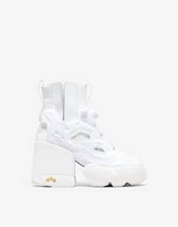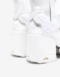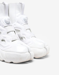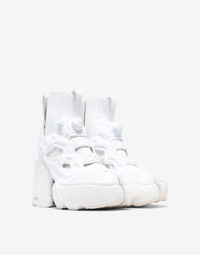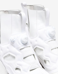 Introducing the Maison Margiela x Reebok collaboration, first launched in the Artisanal show and revealed in different colours during RTW. Hybridising the most familiar shoe codes of the two collaborators, the Maison's signature Tabi cleft toe shape from 1988 unites with Reebok's trailblazing sneaker from 1994, the Instapump Fury. This heeled rendition comes in brushed leather with a 11cm statement rubber sole – a Hexalite midsole provides cushioning and shock absorption and a Graphlite arch bridge lends flexibility and lightweight support. The Instapump foot chamber creates the maximum customised fit with a laceless construction. Featuring an architectural silhouette with two utilitarian pull tabs. Made in Italy. Item details 100% Bovine leather, Polyester, Elastane, Neoprene Logo Basic solid color Elasticized gores Leather lining Rubber sole Polished leather Square heel Rubber heel