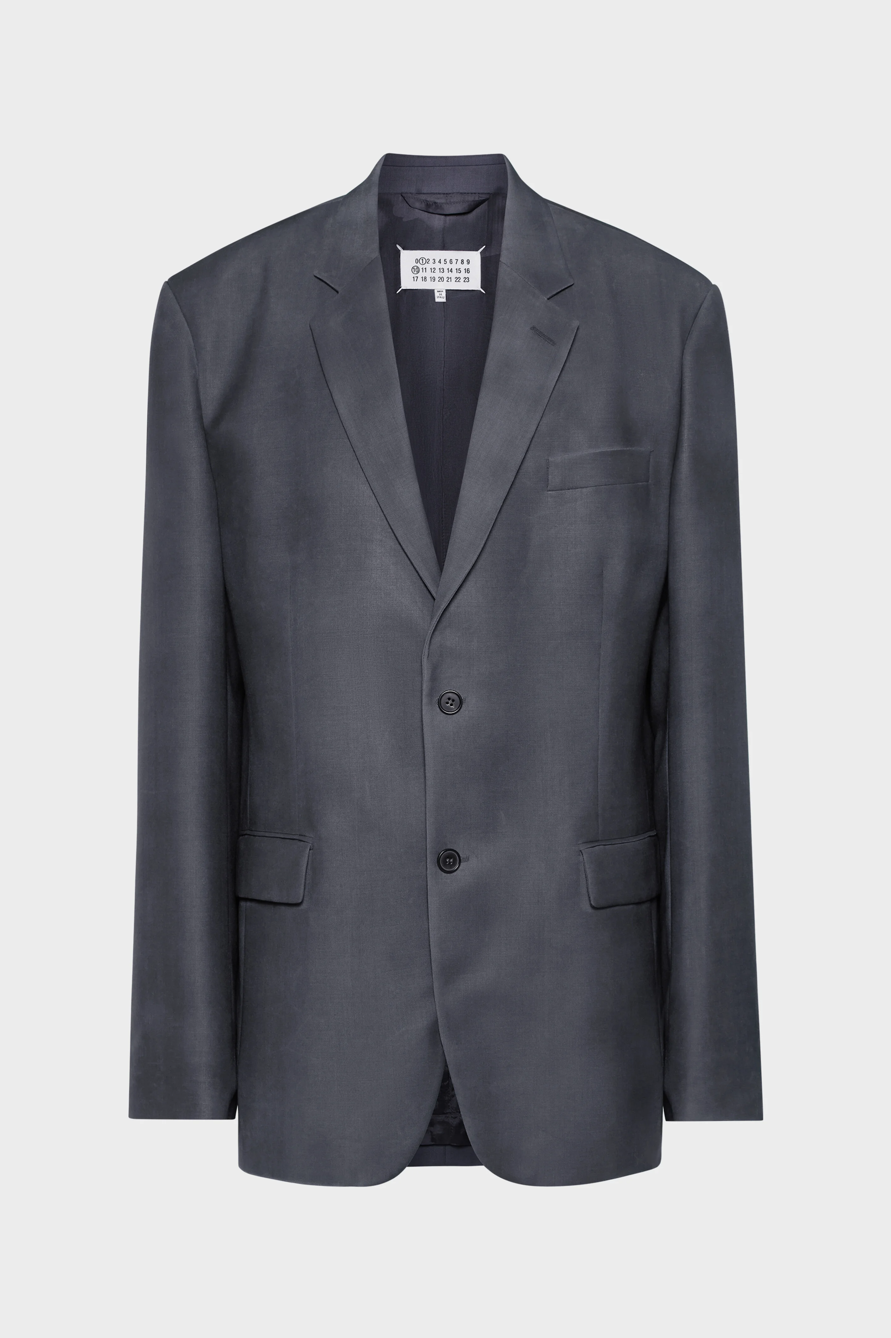 The notched collar blazer comes in a wool mohair blend with hand-applied greasy patina technique for a worn, uneven finish. With a single-breasted closure, the jacket is finished with a chest pocket, flap pockets and comes without a back vent for a clean silhouette. Maison Margiela's signature, the Four stitches, appear at the back; the opposite of a label. Product Details Item ID S51BN0431M35141859 Composition: 60% mohair, 40% wool Lining: 100% viscose-rayon Pocket lining: 100% cotton Wool mohair suit jacket Hand-applied Greasy Patina technique Notch lapel Single-breasted closure Welt pocket Flap pockets Buttoned cuffs Four stitches at the back Made in Italy Model is 5'8" tall and wears a size 40.