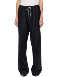Plain-woven wool trousers. · Pinstripes throughout · Drawstring and adjustable button tabs at waistband · Belt loops · Three-pocket styling · Zip fly · Pleats at front · Creased legs · White stitching at back Supplier color: Blue Body: 100% wool. Trim 1: 100% cotton. Trim 2: 100% viscose. Made in Italy 252168F087001