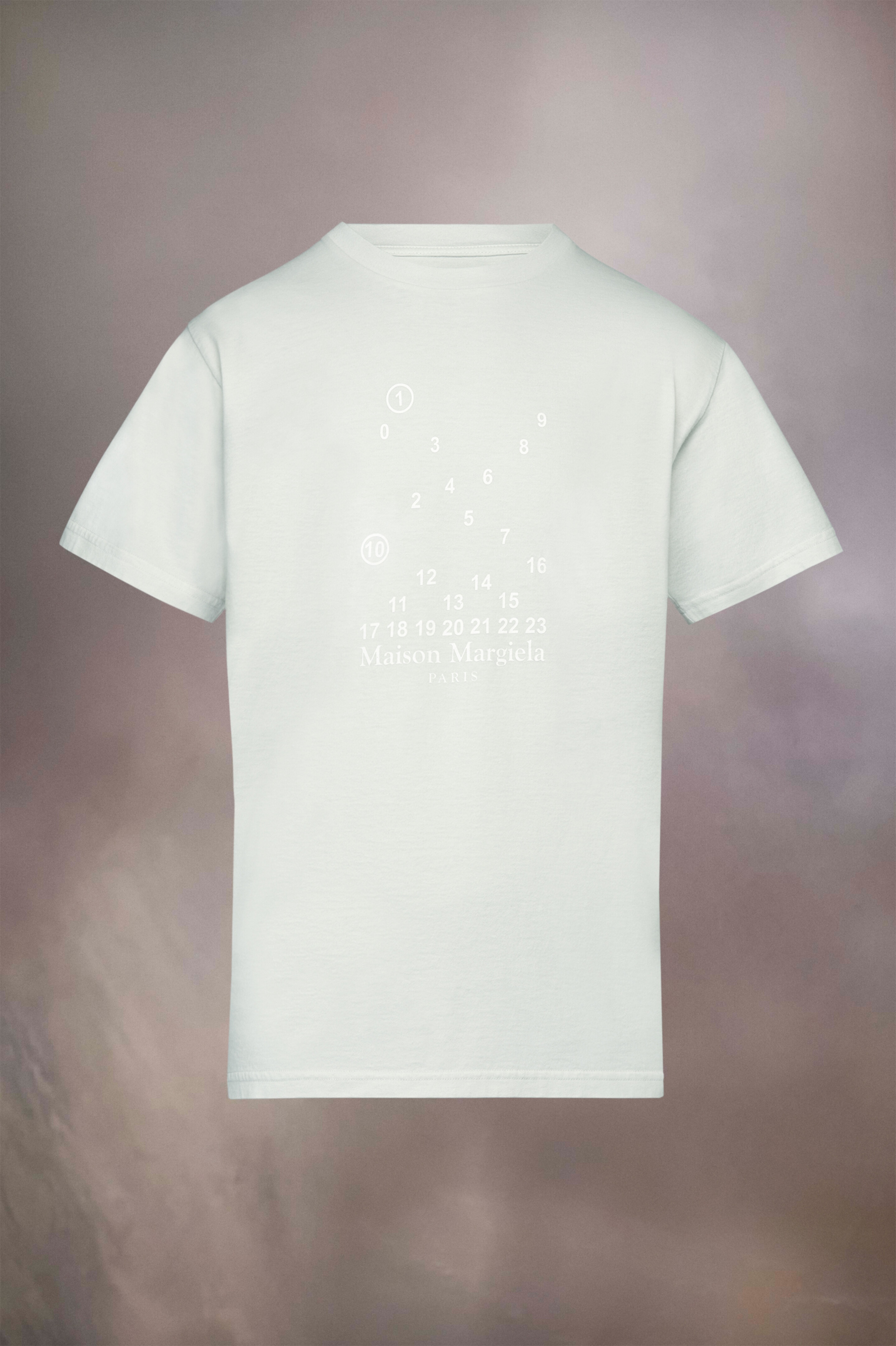 The T-shirt in cotton jersey features the scattered numeric logo across the front. It is long-line with a crew-neck. Maison Margiela's signature, the four stitches, appear at the back; the opposite of a label. Product Details Item ID S51GC0521S20079102