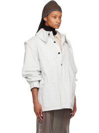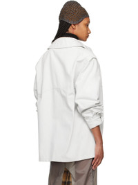 Non-stretch denim jacket. · Spread collar · Concealed button placket · Patch pockets · Pleats at press-stud barrel cuffs · White stitching at back collar · Patch pocket at interior Supplier color: Off white