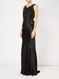 open back evening dress Black silk open back evening dress from Maison Margiela featuring a v-neck, a sleeveless design, a fitted waist, a flared skirt and a long length. Made in Italy Composition Artificial Fur 100% Washing instructions Dry Clean Only