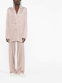 oversized button-up blouse Lauded for its unconventional approach to ready-to-wear, Maison Margiela takes inspiration from classic pyjama styles in the design of this blouse. The fluid satin construction and powder-pink hue lend a relaxed look. Imported Composition Viscose 100% SIZE & FIT Model measurements Height 5 ft 10 in(1.79 m) Bust/Chest 31.1 in(79 cm) Hips 35.03 in(89 cm) Waist 24.01 in(61 cm) FittingInformation This piece fits true to size. We recommend you get your regular size Cut for a loose fit Made with a mid-weight fabric Washing instructions Dry Clean Only