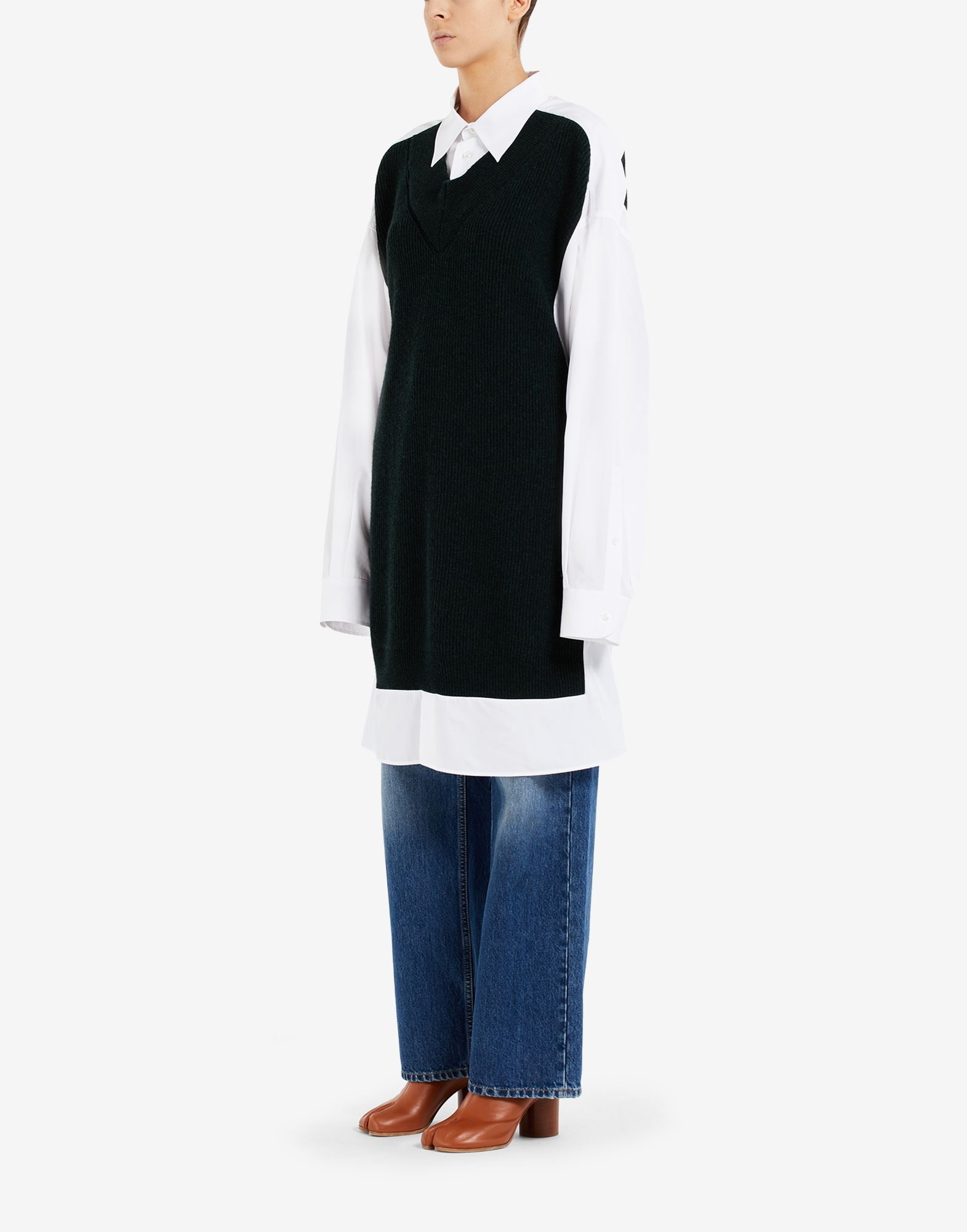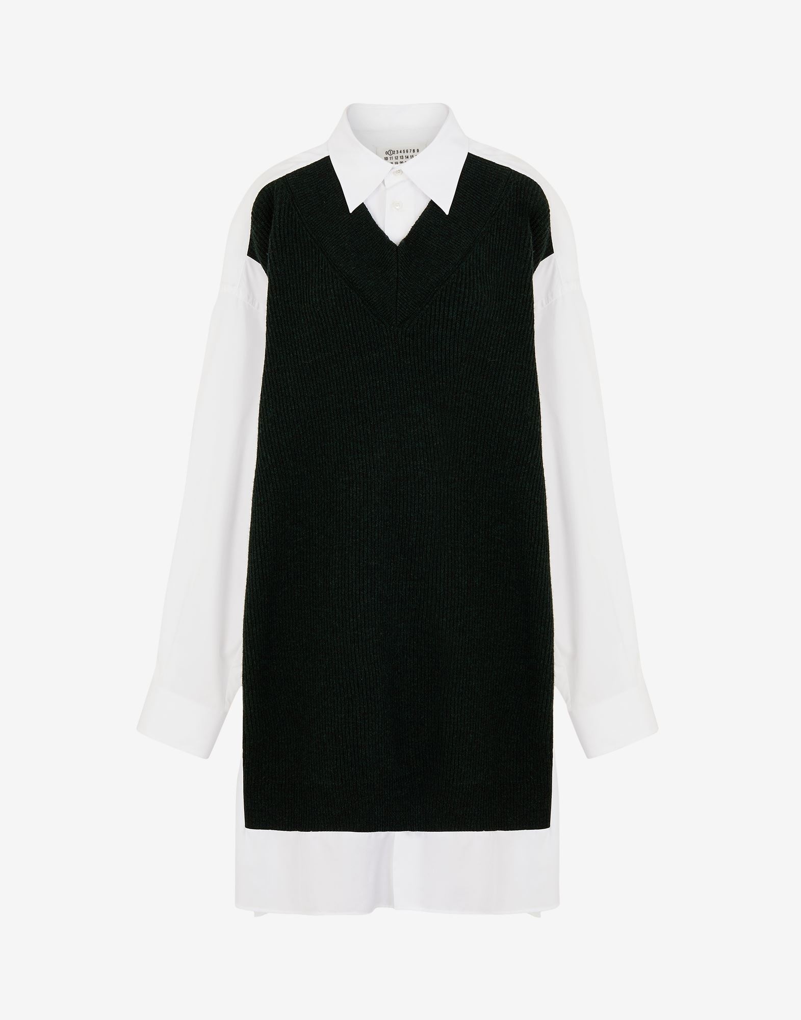 Item details 100% Cotton, Wool Poplin Knitted Folds Classic Neckline Long sleeves Button closing
