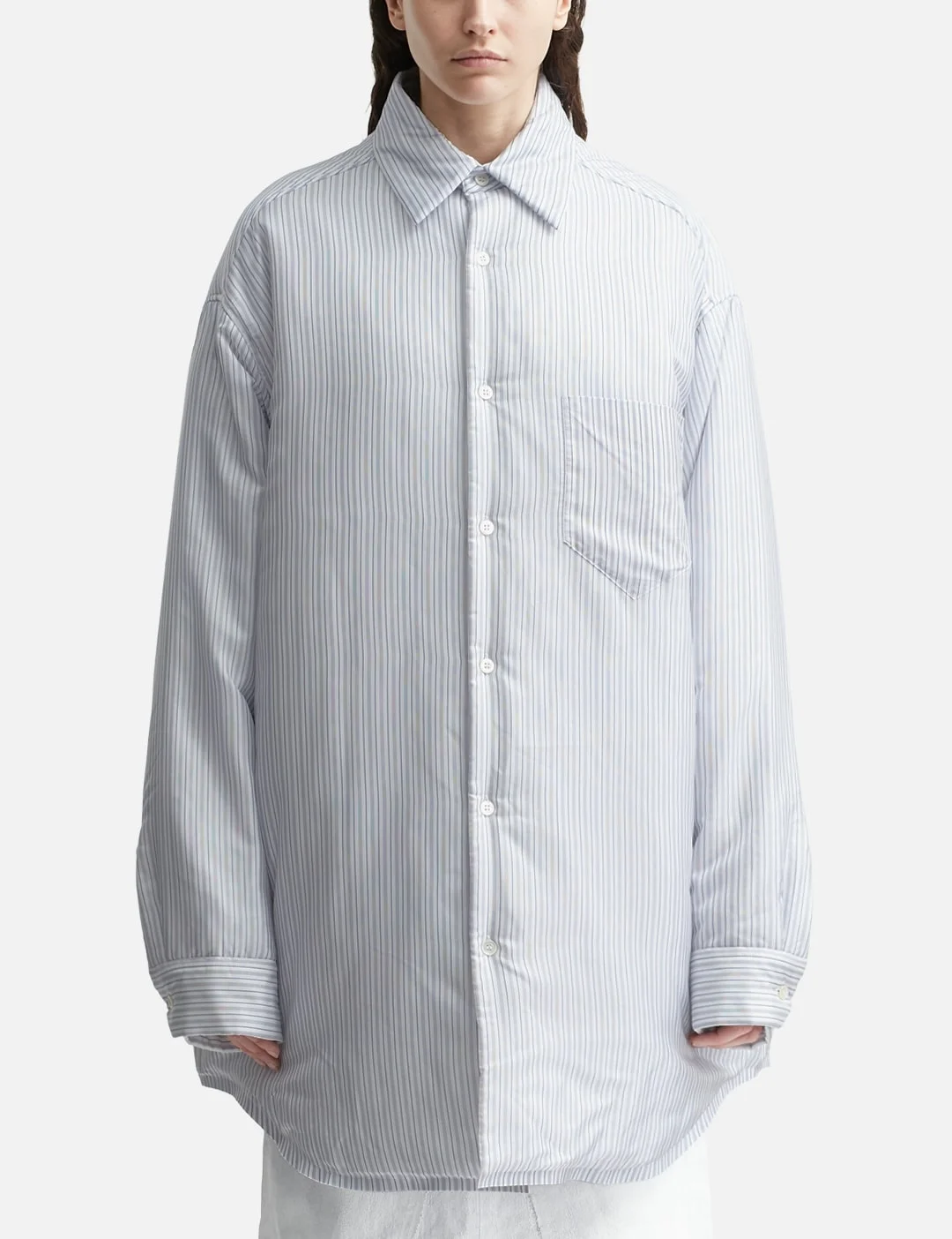 - Maison Margiela - Padded Stripe Shirt - Pointed collar - Button closure - Buttoned cuffs - Curved hem - Four stitches at the back - Color: Blue - Material: 100% Cupro - See more Shirts and Clothing SIZING Male - Model wears size 50 - Model measures: Height 189cm, Chest 31.5"/80cm, Waist 27”/69cm, Hip 34.3’’/87cm - Model wears size 48 - Model measures: Height 175cm, Chest 32’/81cm, Waist 24.5’’/61.2cm, Hip 35’’/88.9cm