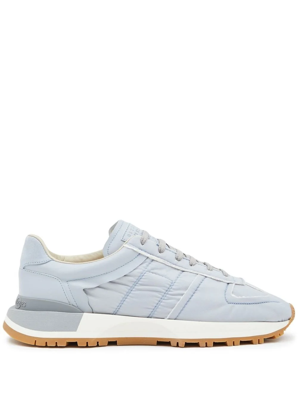 50-50 low-top sneakers Highlights - Panelled low-top sneakers from maison margiela featuring light blue, calf leather, calf suede, panelled design, flat rubber sole, front lace-up fastening and round toe. Made in Italy Composition Leather 100%
