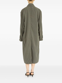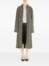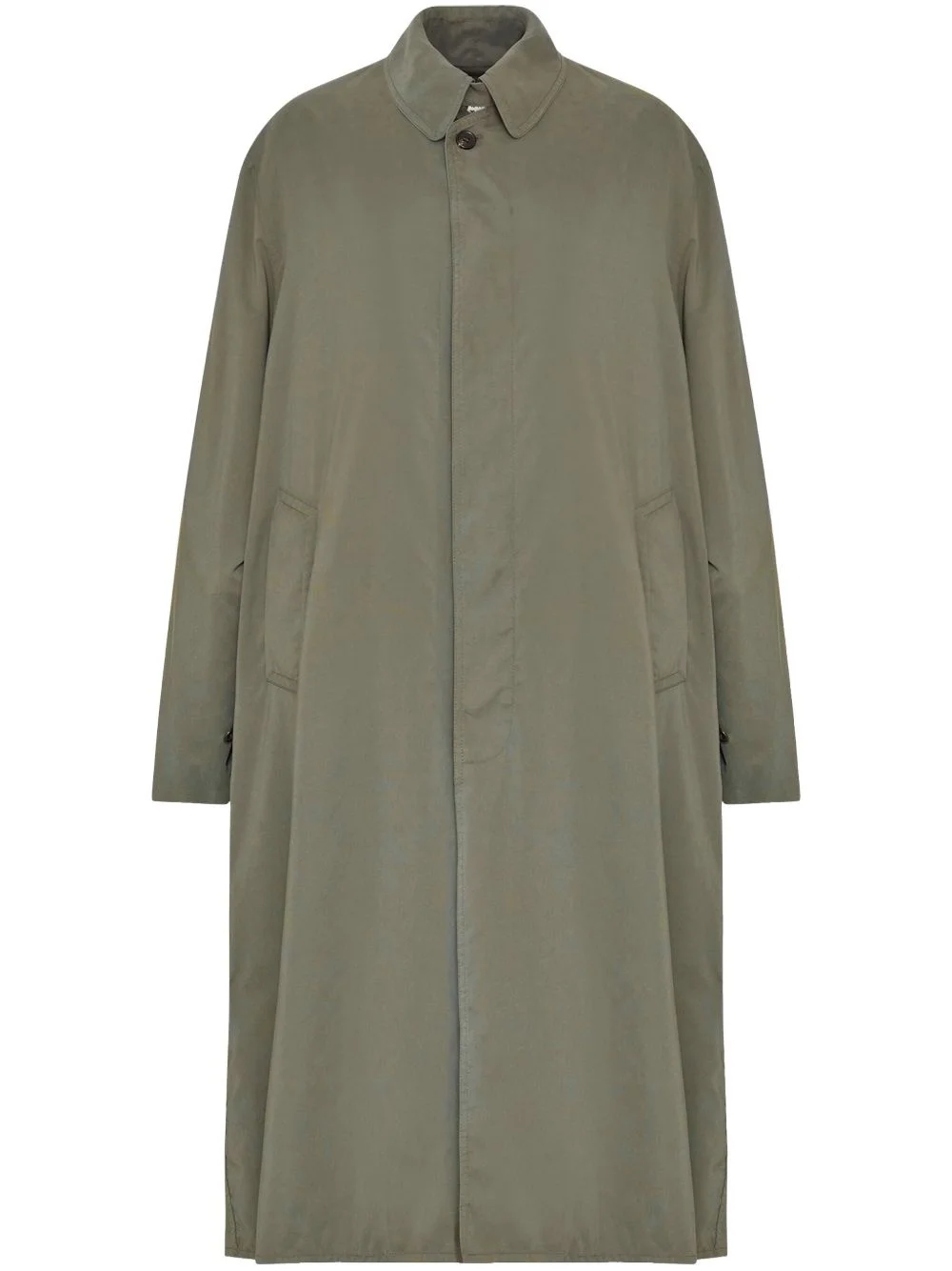 peached trench coat Highlights - Sage green - Front button fastening - Two side slit pockets - Central rear vent - Belted cuffs Made in Italy Composition Polyester 87%, Polyamide 13% SIZE & FIT FittingInformation Made from a midweight non-stretch fabric