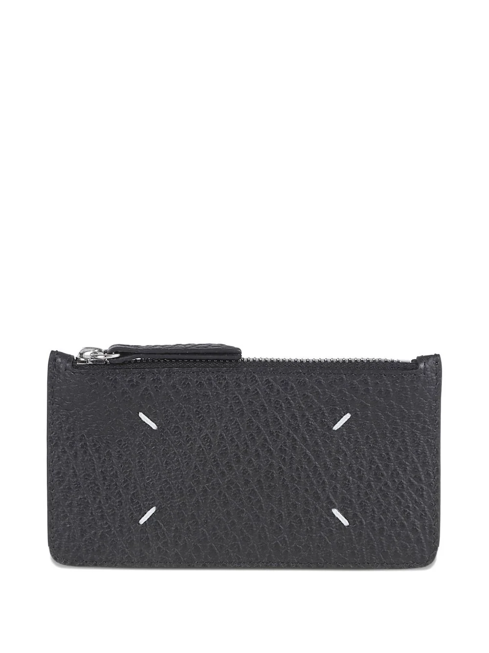 pebbled leather four stitches wallet Highlights - Black - Pebbled texture - Zip closure - Five card slots - Four stitches detail - Metallic zipper pull Made in Italy Composition Outer: Calf Leather 100% SIZE & FIT Measurement LENGTH 5.11 in(13 cm) WIDTH 2.75 in(7 cm)