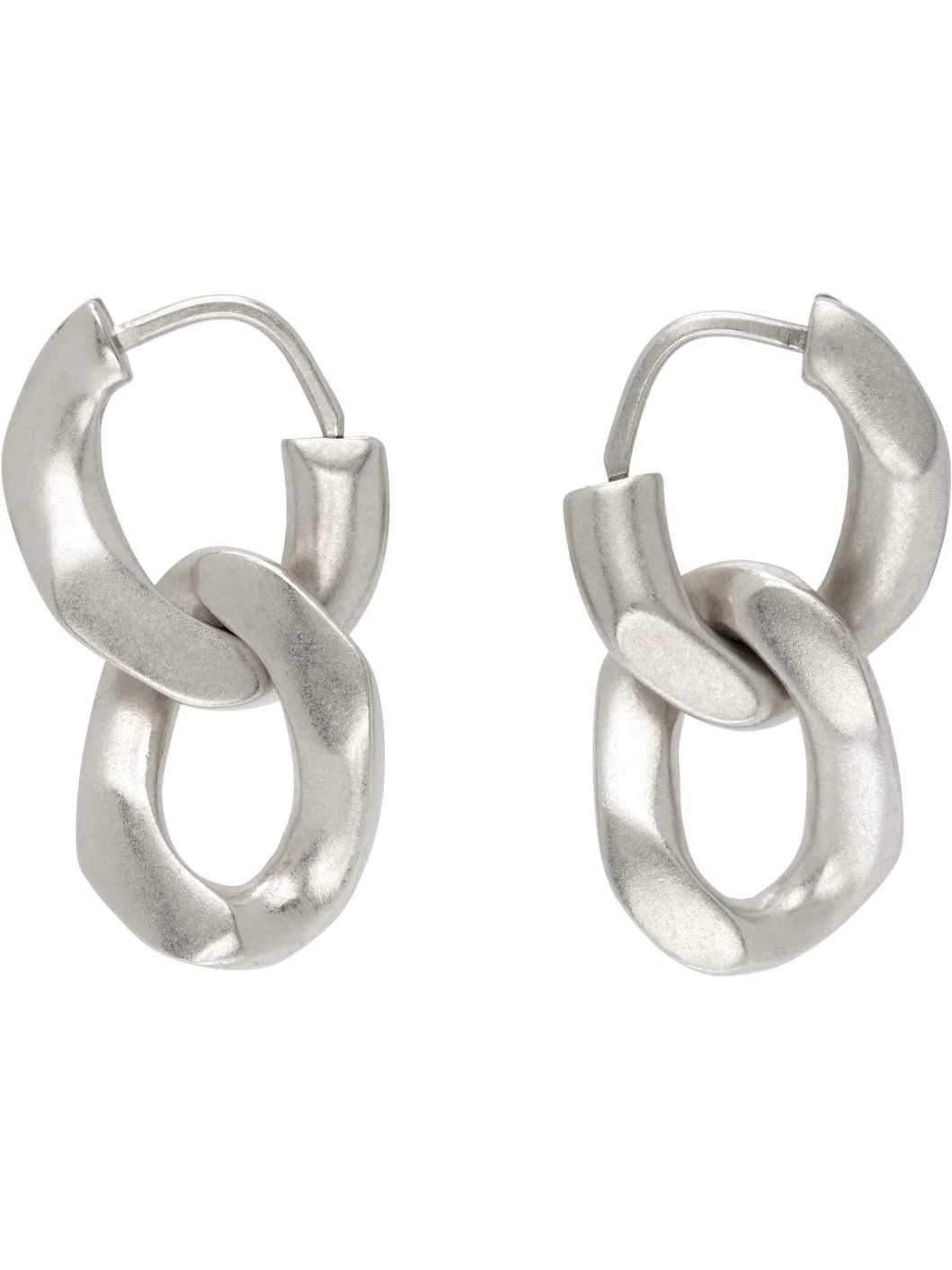 Pair of curb chain drop earrings in sterling silver. · Hinged-post fastening · H1" x W0.5" Supplier color: Palladio buratta 925 sterling silver. Made in Italy 252168F022000