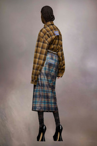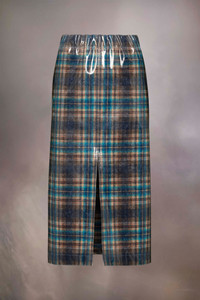 With a front slit, the midi skirt comes in lacquered Pendleton check wool with the brand's logo label at the back. It features an elasticated waist for a casual take. Maison Margiela’s signature, the Four stitches, appear at the back; the opposite of a label. Product Details Item ID S51ME0011S78041001F Primary fabric: 100% wool Coating: 100% polyurethane Pocket lining: 100% cotton Midi skirt in laminated Pendleton check wool Elasticated wasitband Front slit Side pockets Four stitches and Pendleton jacquard label at the back Made in Italy Model is 175cm tall and wears a size 40.