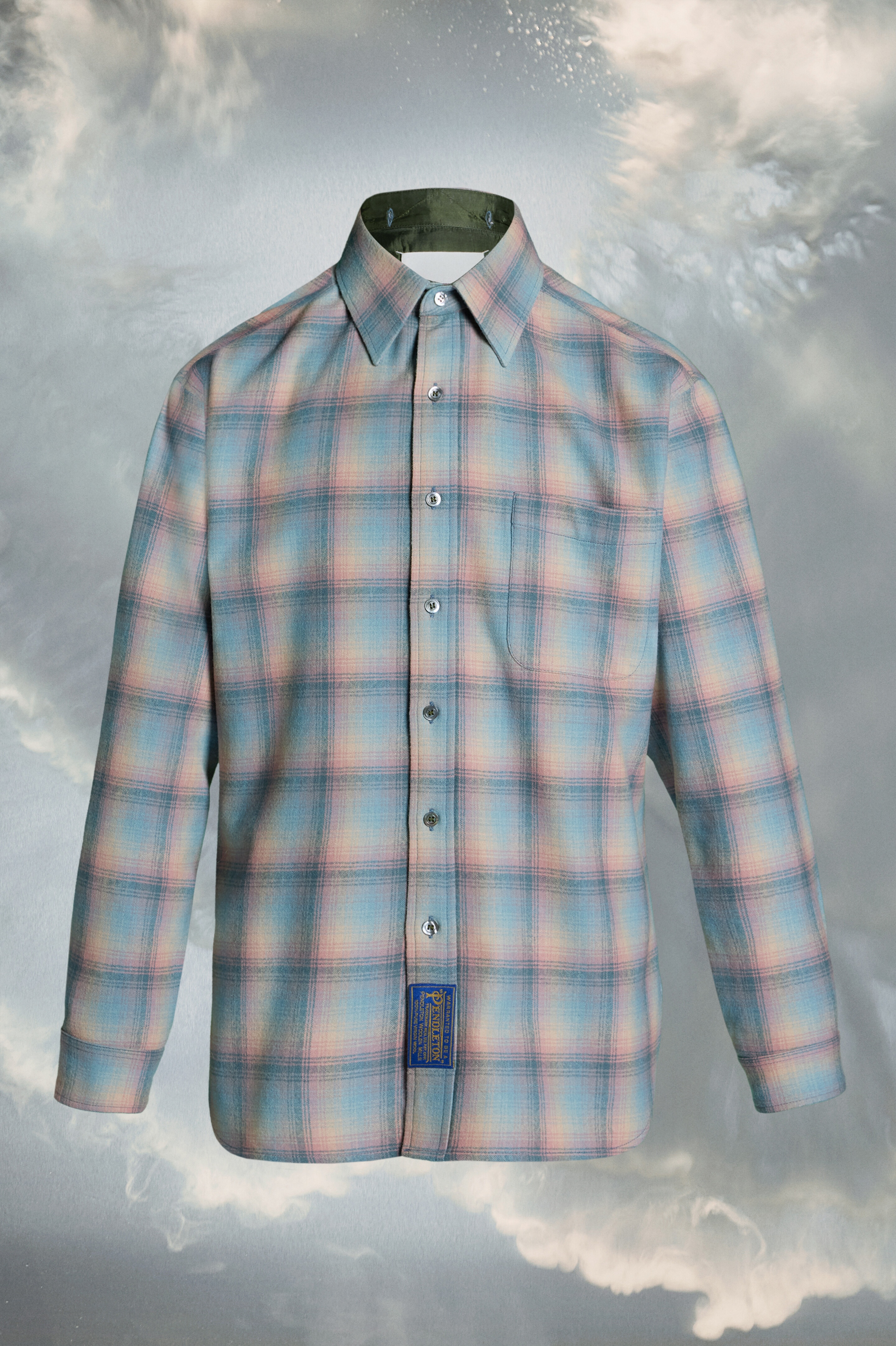 Crafted from Pendleton check wool, with large logo label at the back, the shirt features mother of pearl buttons to close and mother of pearl buttons at the cuffs. The collar can be worn open or upright. Maison Margiela’s signature, the Four stitches, appear at the back; the opposite of a label. Product Details Item ID S67DT0010S78039001F COED Fall Winter 2023 Composition: 100% Pendleton check wool Mother of pearl botton closure Cuffs with botton closure Hook-and-eye collar closure Pendleton label at the back Four stitches at the back Made in Italy Oversized fit