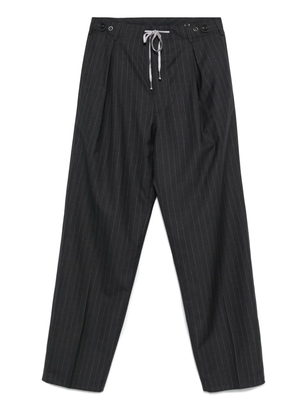 pinstripe drawstring trousers Highlights - Grey - Pinstripe pattern - Drawstring fastening - Pleated front - Button detailing - Welt pockets Imported Composition Fabric 100% Washing instructions Read Manufacturer Guidelines