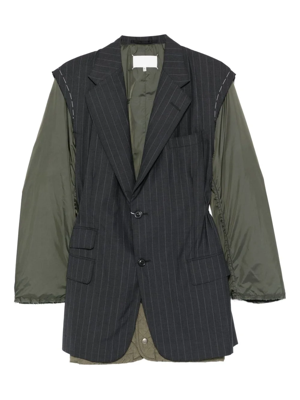 pinstripe-pattern jacket Highlights - Dark green and grey - Pinstripe pattern - Panelled design - Button fastening - Flap pockets - Raw hem Made in Italy Composition Outer: Wool 100%, Polyester 95%, Polyamide 5% Lining: Polyamide 100%, Cotton 100%, Viscose 100% Washing instructions Dry Clean Only