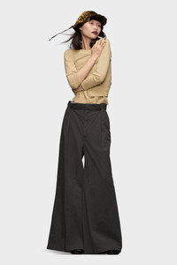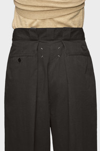 The wide-leg trousers come in a cotton blend with exaggerated folded pleat details creating an impactful silhouette and revealing the inner fabric at the waistband. The trousers are complete with wide belt loops, pockets and hidden fastening placket for a clean aspect. Maison Margiela's signature, the four stitches, appear at the back; the opposite of a label. Product Details Item ID S51KA0601M35289900 Primary Fabric: 50% Cotton 50% Polyamide-Nylon Pocket Lining: 100% Polyester Cotton polyamide trousers High waist Wide leg Front pleats Horn button closure Side pockets Four stitches at the back Made in Italy Model is 180 cm tall and wears a size 40.