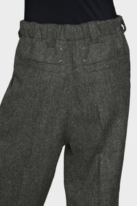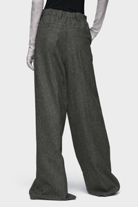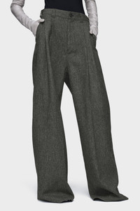 Cut from weighty wool with a tactile finish, these trousers fall in a soft, oversized line. The double front pleats and subtle texture add quiet complexity to a utilitarian silhouette. At the back, the Maison’s signature four stitches appear; the opposite of a label. Product Details Item ID S29KA0394M35569855M Primary Fabric: 100% Wool Lining: 100% Viscose-Rayon Pocket Lining: 100% Cotton Wide-leg trousers in textured wool High-rise waist with belt loops Front pleats and side pockets Elasticated waistband at the back Two welt pockets at the back Made in Italy